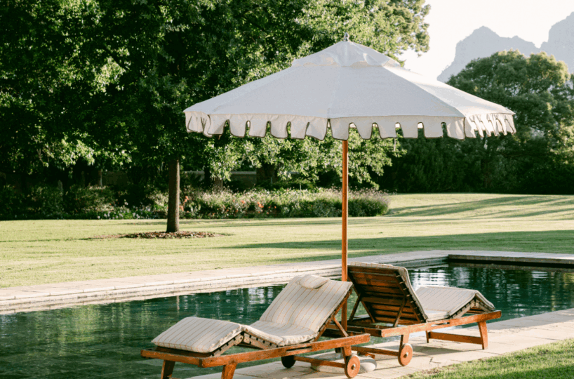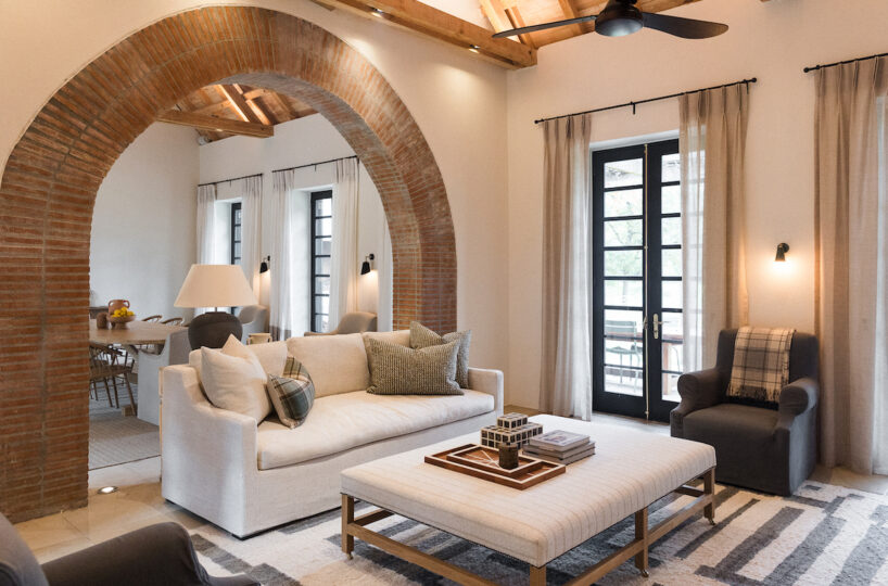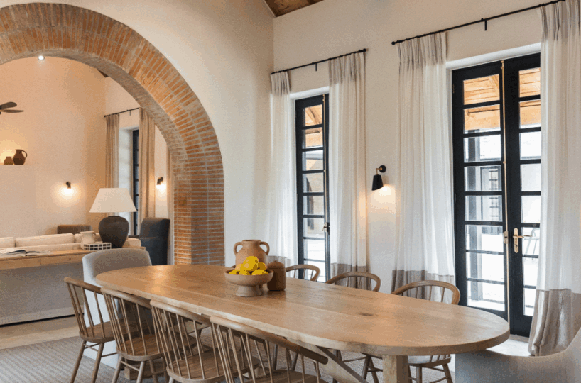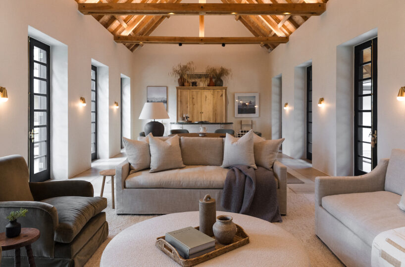 The Farmhouse is the central gathering space for guests at Nieuwe Sion. Two living spaces, a large kitchen, a dining room, and a library are set around a central courtyard, inviting guests to reconnect with loved ones. From the Farmhouse, two sweeping patios are found as well as access to the sparkling pool. Four beautiful bedrooms are also situated within the Farmhouse.