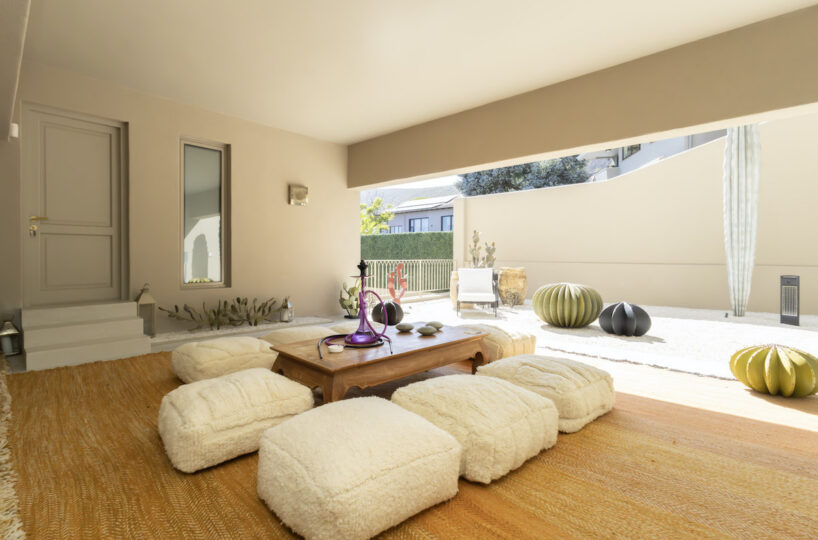 • Opens out to Moroccan riad seating area & cactus garden